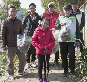 小小“河小青”在家長(zhǎng)的帶領(lǐng)下,帶著鉗子、垃圾袋等清潔工具,沿著岸邊撿拾清理藏在草坪中的垃圾。